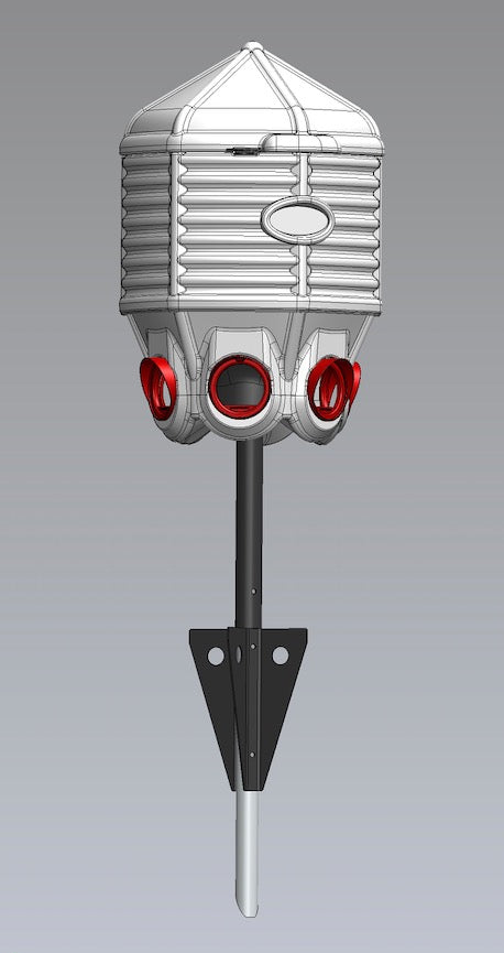 Engineered for durability, the CoopWorx Feed Silo II mounts to a single post and features six "soft touch" feed ports, integrated drip edges and a roost resistant lockable hinged lid. (See mounting instructions below).