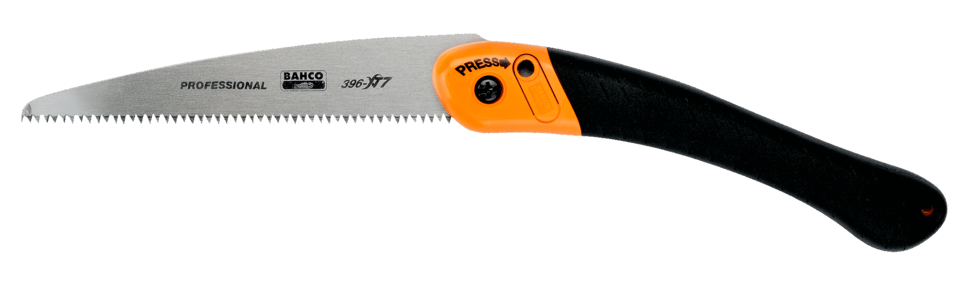 Bahco professional foldable pruning saw with Dual-Component handle for hard or dry wood cutting.