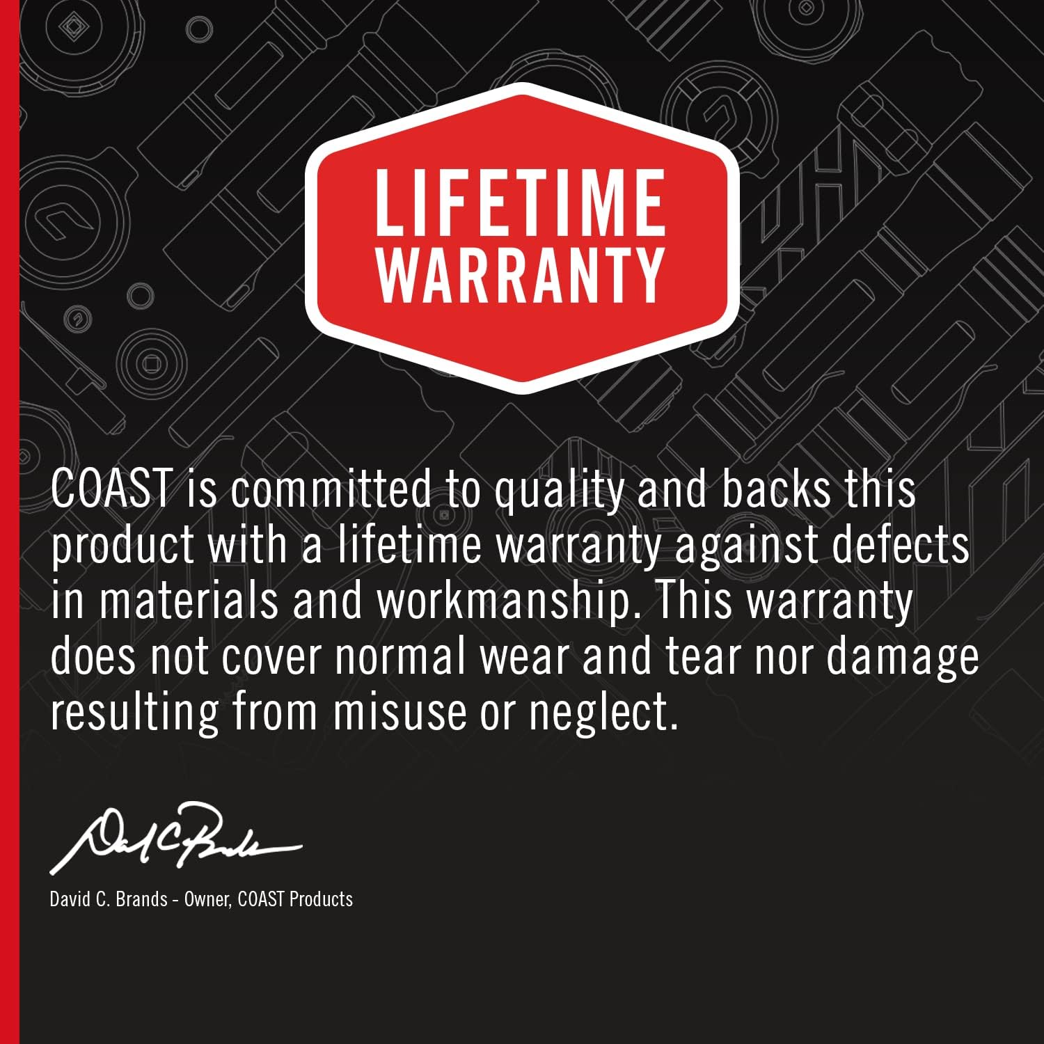 With Coast’s commitment to quality, the HX4 Flashlight is impact resistant, weather resistant and its LED is virtually unbreakable. The HX4 Flashlight is backed by Coast’s lifetime warranty against defects in materials and workmanship. Tested and rated to ANSI/FL1 standards.