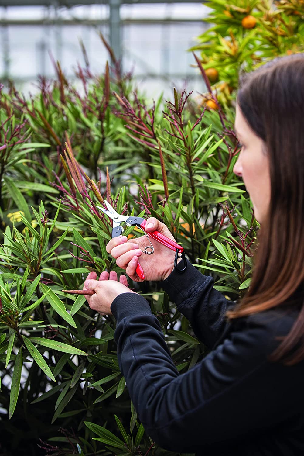 The 177 mm straight chromium blades with rounded ends of the FELCO 321 picking and trimming snips are ideal for all pruning and harvesting work. They are designed to offer optimum comfort, as the shock absorbers and the particularly flexible pin spring of FELCO 321 snips help reduce muscle tension. FELCO 321 picking and trimming snips have been designed for professionals in viticulture, arboriculture and greenhouse growing, and also nurseries and florists; they will equally satisfy the needs of demanding gardening enthusiasts.