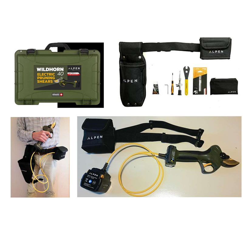 Upgrade your pruning game with the Wildhorn 40 Electric pruning shear. Its partner Felco © crafted blades offer clean cuts every time thanks to its high-speed steel (HSS) and Titanium coating. Cut branches up to 40mm (1.6") with ease and efficiency, all day long with the included batteries and 3-way charger. Plus, enjoy added versatility with the maintenance tools, grease, and extension cable included in the pack.